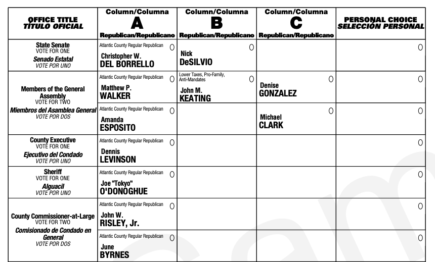 The race is expected to be close, with both Senate candidates having a solid shot of advancing to a competitive general election against Democratic Assemblyman Paul Moriarty. Gloucester is probably where most Republicans will cast their ballots, which is good news for hometown favorite Nick DeSilvio, but Del Borrello has both a structural and financial advantage to compensate.